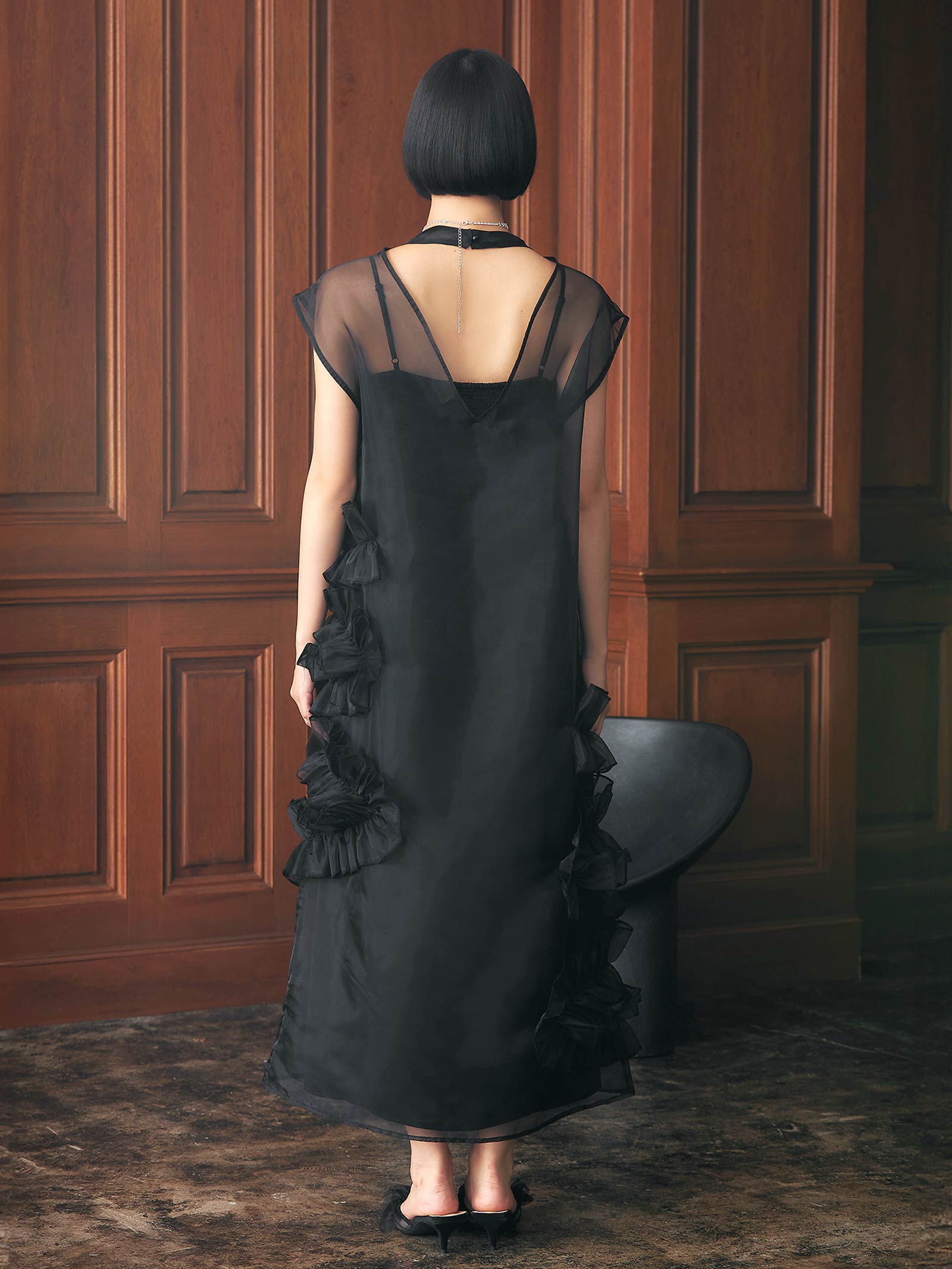 パーティーシーンに好印象をもたらしてくれるオーガンジー素材のドレス。