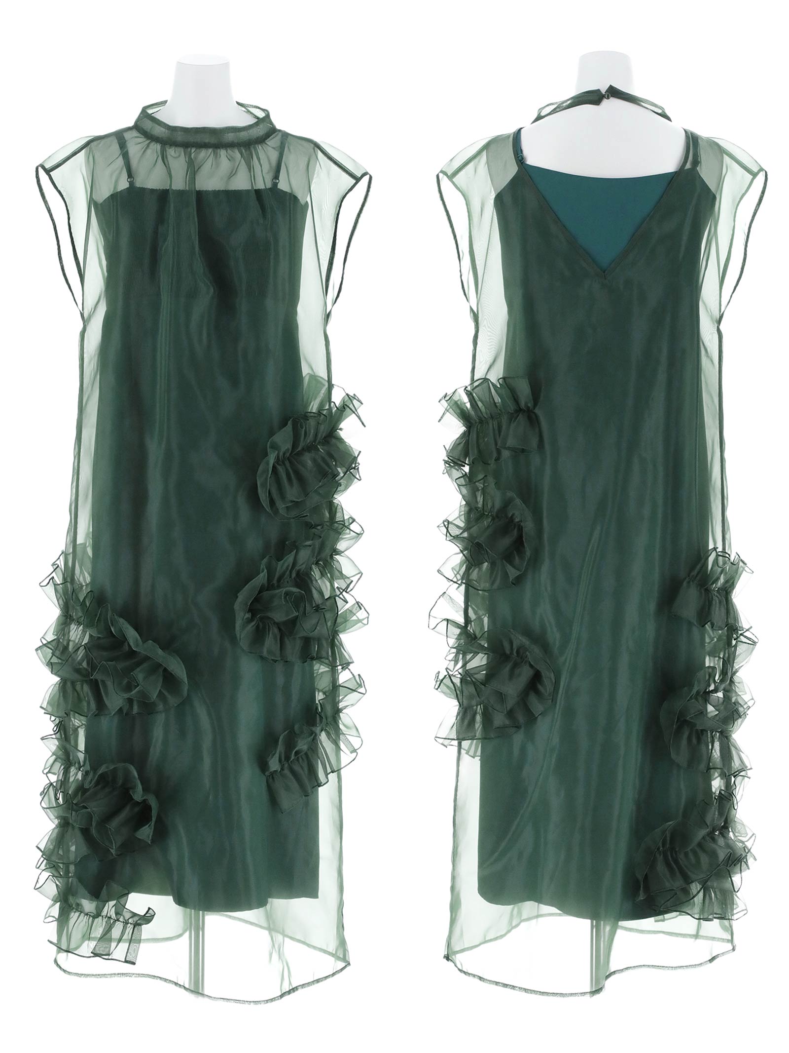 インナーキャミとシアーワンピースのセットで透け感を活かしたデザインに仕上がりました。